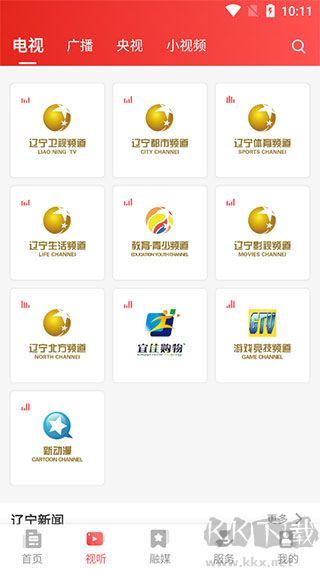 在这里可以看到辽宁卫视和央视的直播,听广播和刷小视频。
