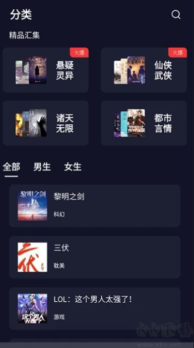 2、于主屏幕上方查找栏中键入作品名称,或进入类别页依照标签挑选喜爱的故事分类。