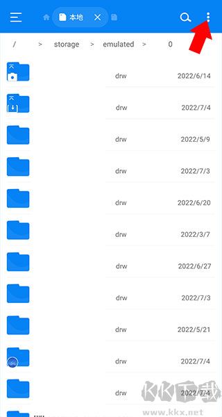 2、我们点击后来到下方界面,可以看到我们手机中所有的文件夹(这里对文件夹名称进行了涂抹),如果需要对其进行存储空间分析可以点击右上角的三个竖排点号按钮