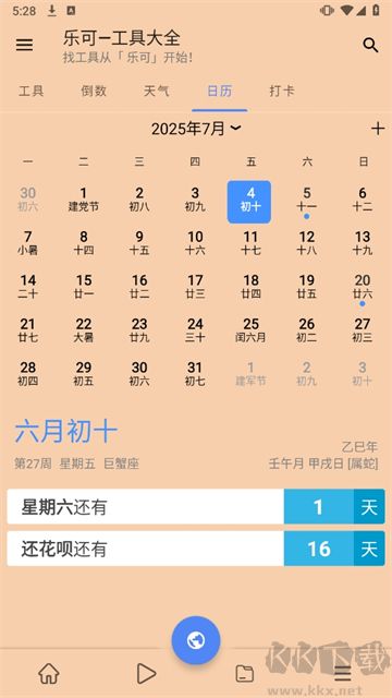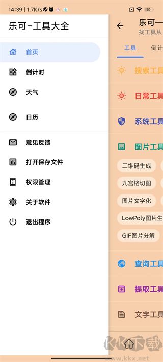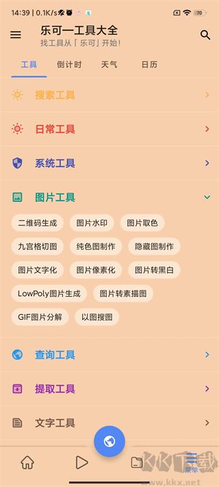 乐可app是由泗阳县前来网络科技有限公司研发所推出的一款实用性非常强大的工具,里面集合了多项精巧功能,比如九宫格切图、气象查询、日期倒数、二维码制作、图片加水印等,应对生活与职业中的各类琐事,为你带来简便的解决之道。