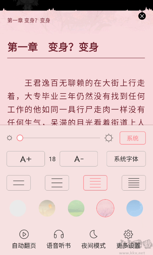 1、打开一本自己正在看的小说,点击设置,找到语音听书。