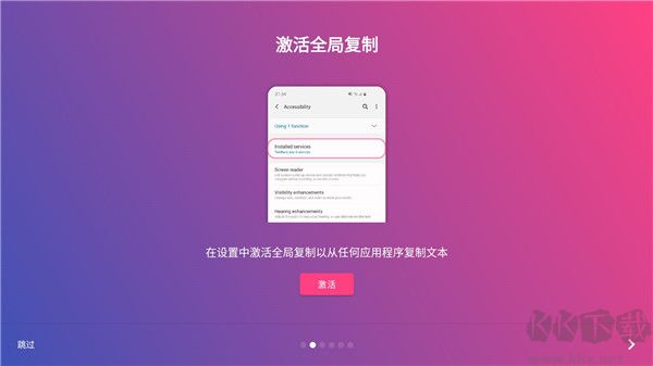 全局复制App是一款功能强大又轻巧实用的文字提取复制应用,允许大家从任何界面自由获取文本,不管是动态评论、图片内嵌信息还是不可直接选择的提示内容,利用光学字符辨识功能,还能准确转换图像里的文字,极大简化了信息收集过程。