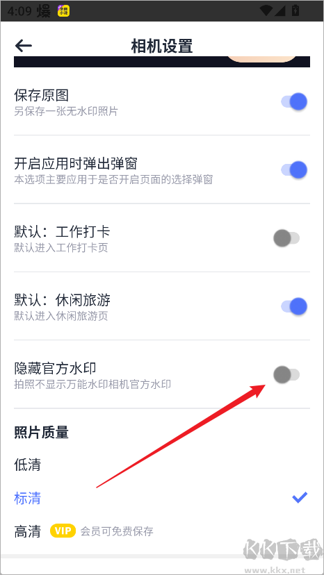 4、在设置中,你还可以选择隐藏官方水印,让照片更干净整洁。