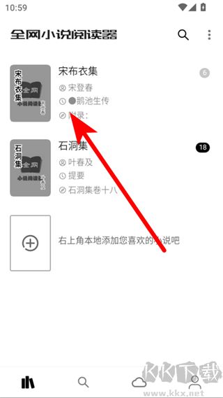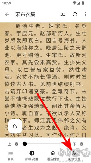 1、打开全网小说阅读器APP,点击想要阅读的小说如宋布衣集进入阅读页面。
