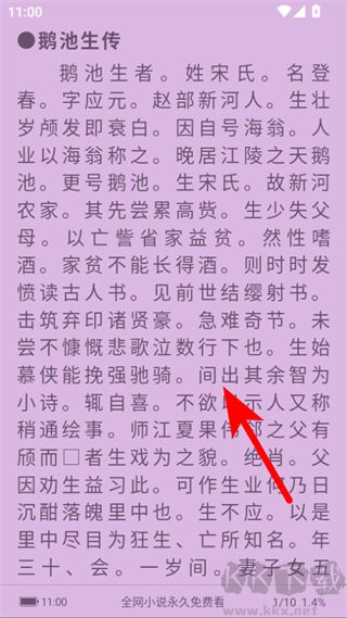 4、设置完成后,即可在设置好的阅读界面中阅读小说。