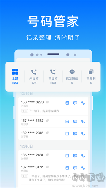 号码精灵app是一款为电销人员提供便捷的号码通讯录管理服务,拥有号码识别、备注、便捷拨号等多功能便捷服务,还拥有号码快速识别功能,告别纸上密麻数字与繁琐手动录入,只需要拍摄或导入图片,文字即刻转为通讯录条目,不管是销售精英或商业伙伴,重要联系人都可以添加专属说明,再次沟通时信息清晰呈现,已拨与待拨号码分开排列,避免重复或遗漏,高效工具,让外呼工作更显从容。