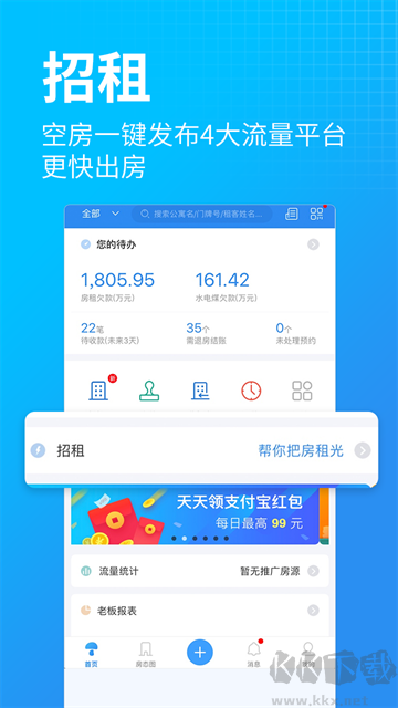 3、房源管理:支持批量登记房屋,随时掌握房屋状态变化。