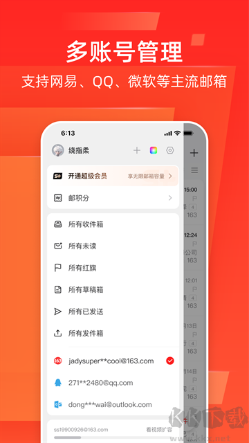 兼容主流邮箱:网易、QQ、Outlook及各类高校、企业邮箱均可添加并统一管理;