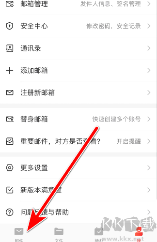 1、首先打开网易邮箱大师app,在首页中选择【邮件】。