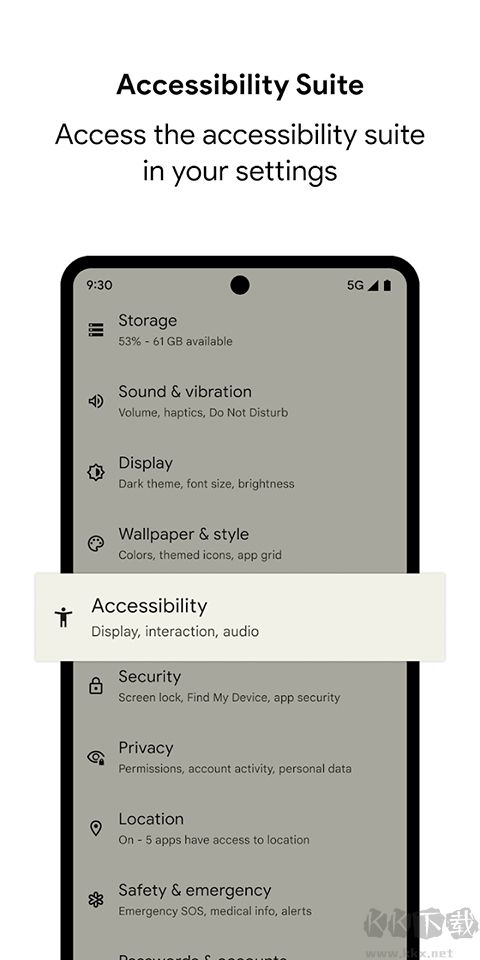 Android无障碍套件app是一个辅助工具,能够帮助行动不便或视力障碍的用户更轻松地使用设备。它包含有“随选朗读”功能,可将屏幕内容大声读出;“无障碍功能菜单”提供大图标界面,方便进行锁屏、调节音量等操作;还有“TalkBack”屏幕阅读器能够通过语音反馈和手势控制协助导航;而“开关控制”则允许用户借助外接开关或键盘来操作设备,无需触摸屏幕,有需要的朋友就快来下载使用吧。