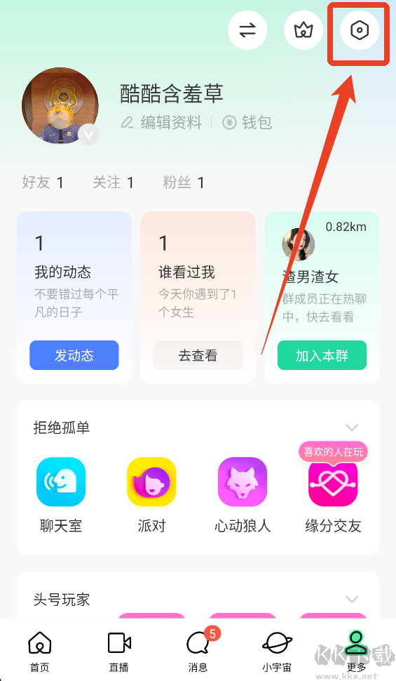 1、在个人主页界面点击右上角的设置。