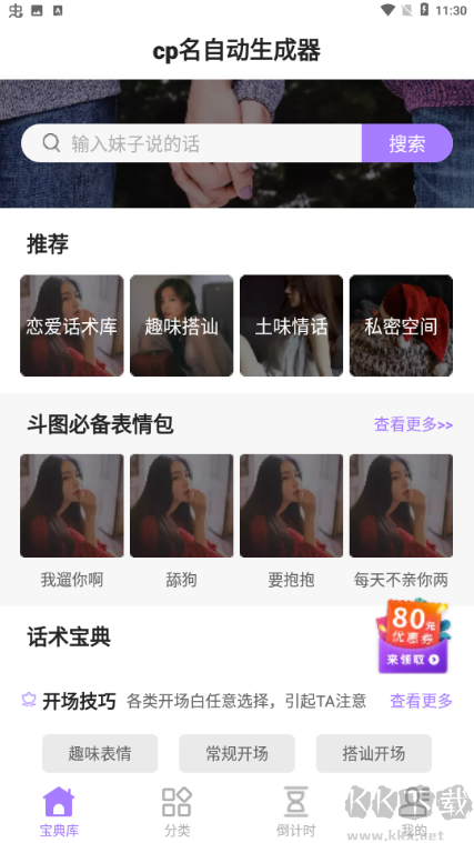 2、cp名称,可以获取各种情侣组合名,每个名字都令人满意;