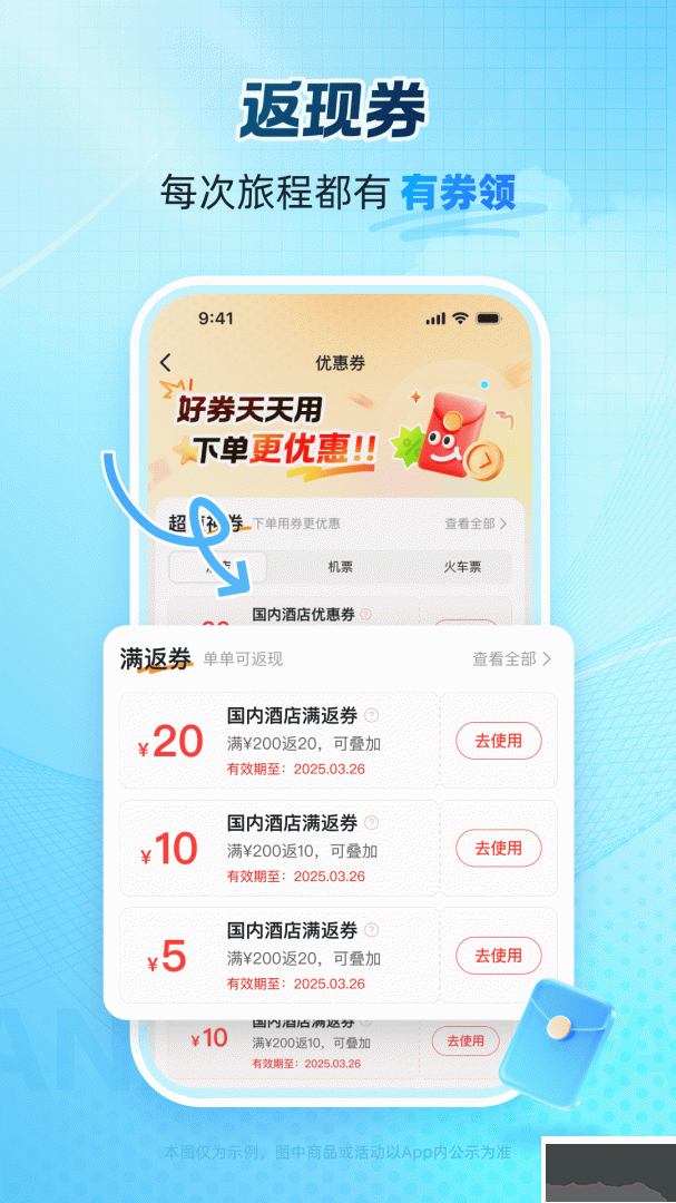 机票单张最高返现726元,酒店每间夜最高返现206元。
