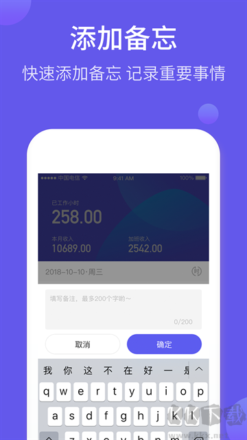4、添加备忘:记录工时可同时添加备注,重要事项不会遗漏;