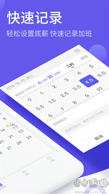 记录加班/请假:快速填写每日加班与请假时长,操作简便;