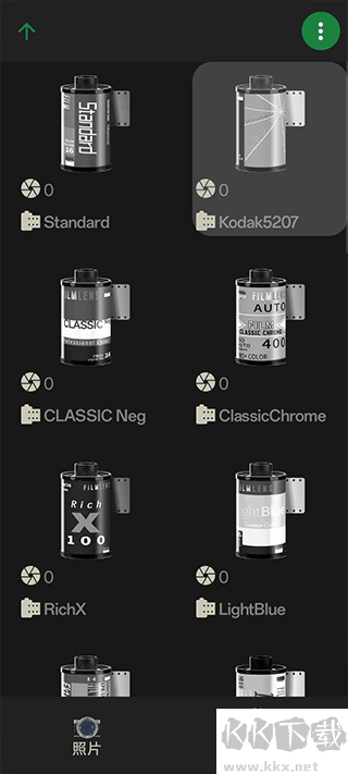 3、可以选择很多内置胶片或自己导入胶片文件来获取更好的拍照体验