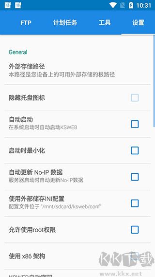 5、如需修改相关配置,请进入“服务器选项”,点击“ini files”项目,系统会将配置文件导出至设备 SD 卡的路径:“…/sdcard/ksweb/ini/”。