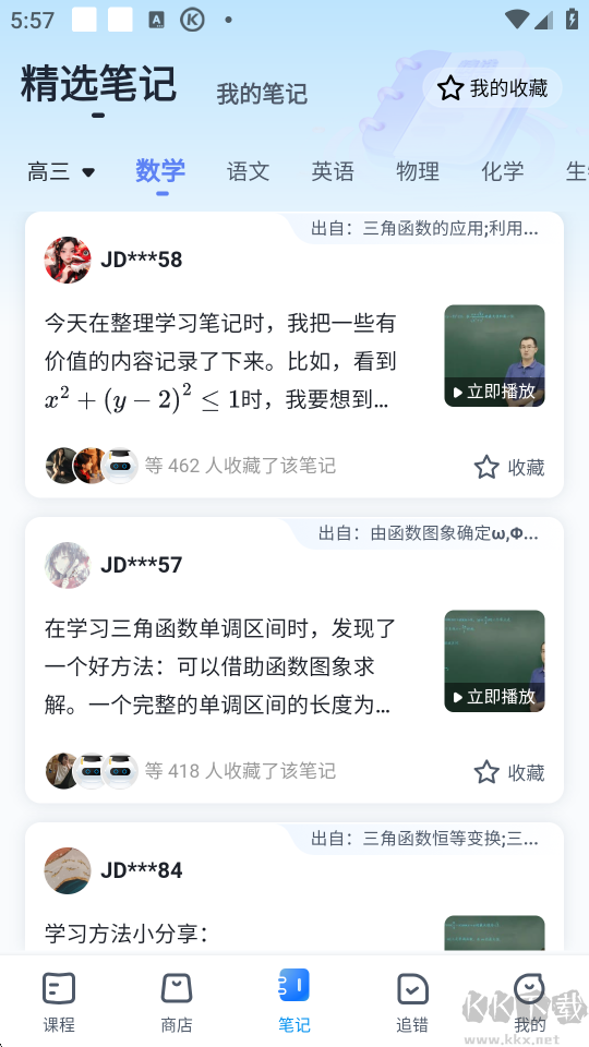 5、回到首页,点击笔记板块,查看别人每节课做的笔记这也是提升的一个办法