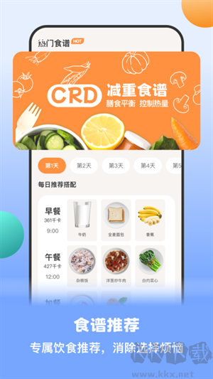 3.[科学食谱专属定制]:提供专业食谱推荐,解决减脂期用餐烦恼,参考减肥食谱与卡路里摄入,可叠加薄荷健康记录,燃脂减肥效果优于哥本哈根、生酮减肥法,兼顾营养与减脂效率。