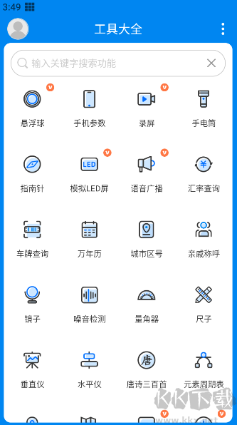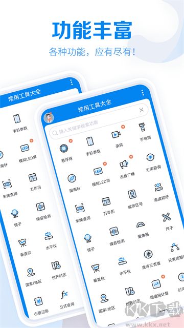 工具大全app是一款整合多款实用生活工具的软件,内含手电筒、镜子、音量检测、水平仪、指南针等三十余种功能,满足学习、工作与生活的各类需求。软件还配备手机快捷操作悬浮球,可以快速操作手机、节省时间,还能全面检测手机配置,提供汇率查询、车牌查询、万年历等实用工具。需要的朋友快来下载试试吧!