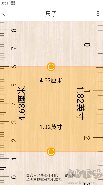 尺子:借助屏幕模拟直尺,提供厘米/英寸刻度,满足日常简易长度测量需求。