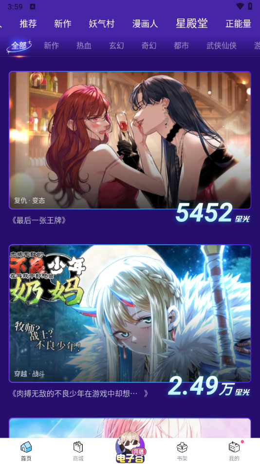 1. 丰富的多样的漫画资源让应用在同类应用中脱颖而出,几乎所有类型的漫画都能在这里找到。