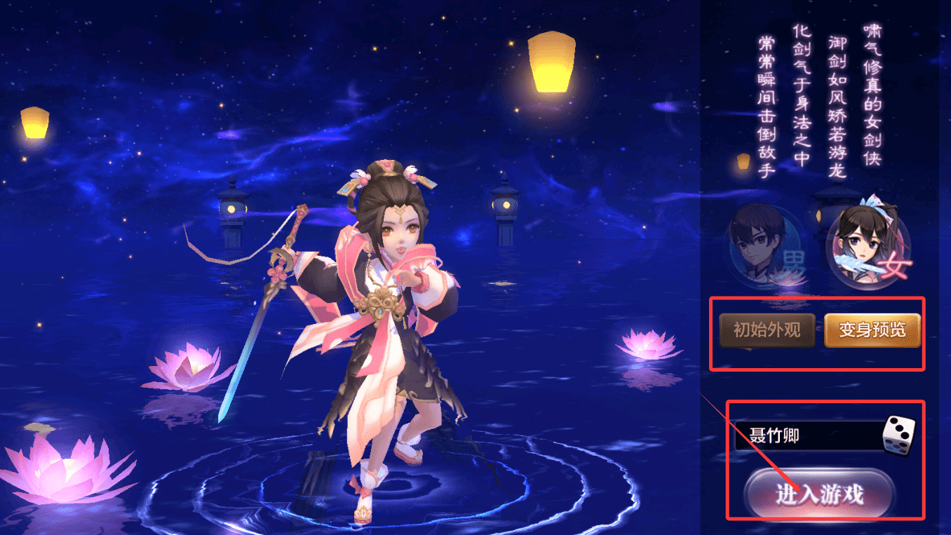 2、确定职业后,为角色命名并选择初始外观,通过变身预览功能查看其不同形态,随后正式进入游戏世界,开启主线剧情旅程。