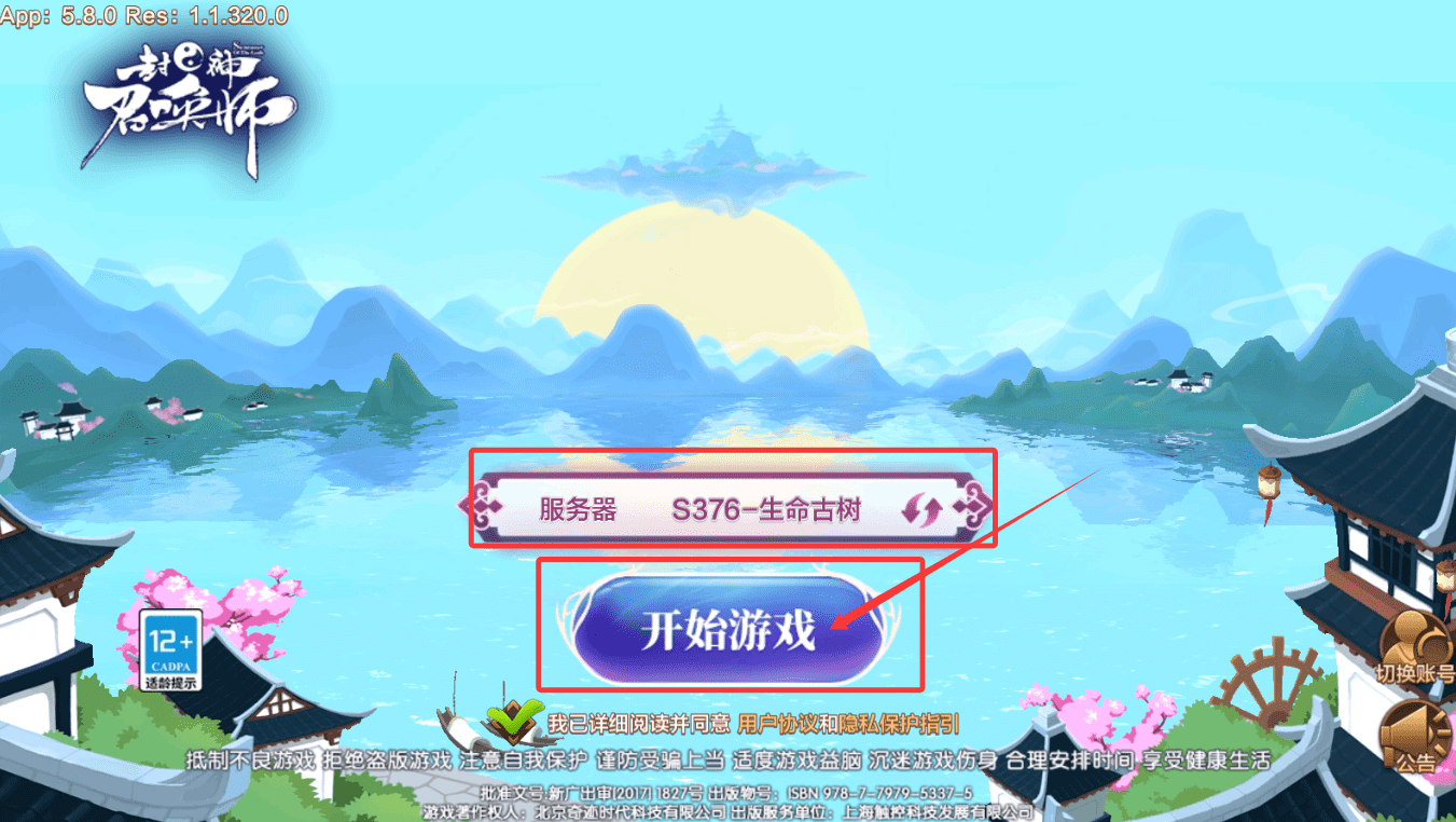 1、首先打开游戏,确认当前的服务器是S376-生命古树,仔细阅读并同意用户协议和隐私保护指引。然后点击开始游戏,就能进入角色创建或登录界面了。