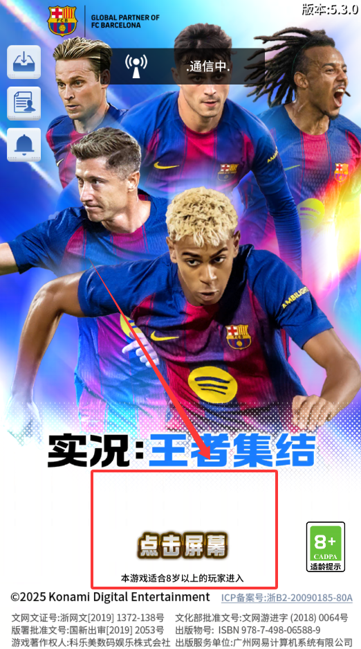 1、注意提示是适合8岁以上玩家,之后会看到通信中的加载界面,别着急呢,版本和授权信息确认后,就会开始下载游戏资源了。