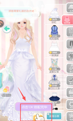 4、选好符合顾客需求的服装后,点击界面中的 “点击 OK 搭配完毕” 按钮,就能完成这次的时装搭配。