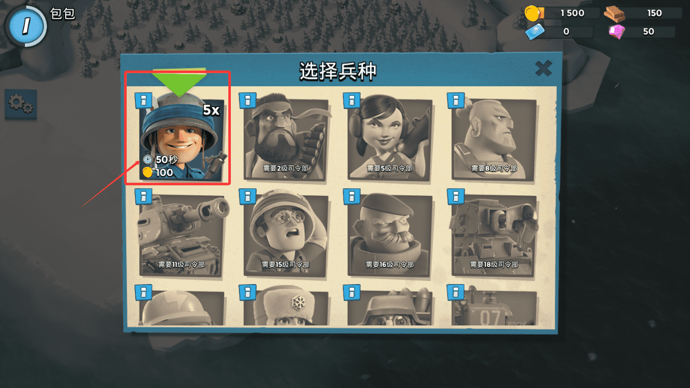 技巧3:登陆艇上一开始最多只可以装5名普通士兵,普通士兵的战斗力与血量都非常少,只适用于前期的几座比较容易获胜小岛屿,小编建议玩家一开始先把最主要司的令部升级完成之后,就开始升级登陆艇。