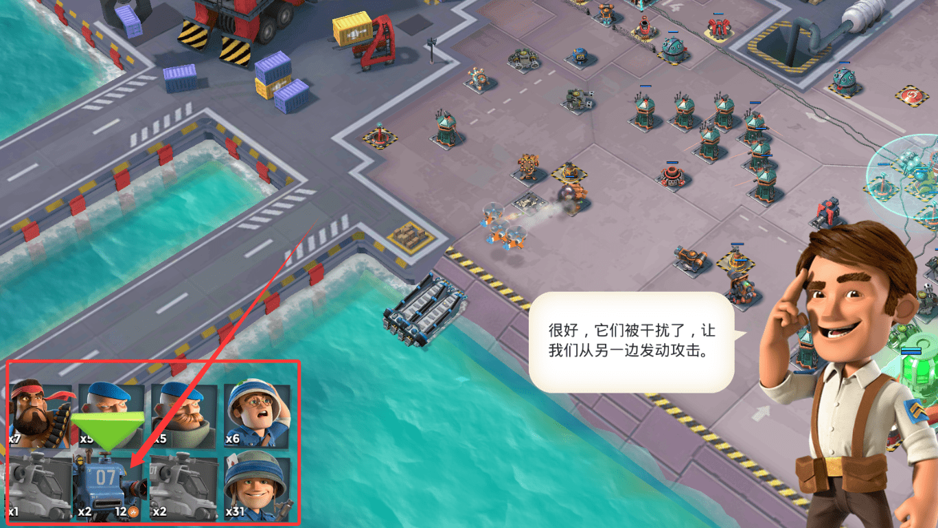4、当敌方防御被成功干扰后,引导会提示你利用创造的战术空档。此时需要指挥部队从战场的另一侧或薄弱点发动真正的进攻,以此实践声东击西的基础战术思想。