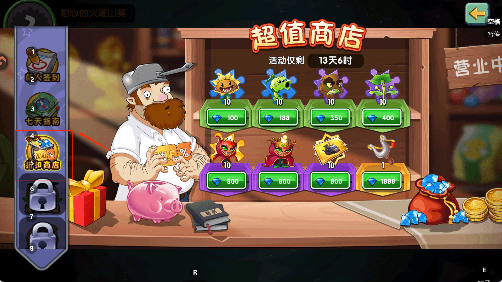 4、签到获得的钻石不要乱花呢,先去“折扣商店”看看有没有急需的物品,比较后再决定购买什么。