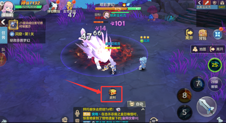 2、新的伙伴加入你的队伍,选择最好的战斗阵容,消灭所有的怪物BOSS。