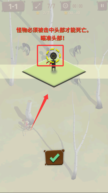 1、开局通过虚拟摇杆控制移动,右手滑动瞄准弓箭轨迹,长按蓄力松手发射箭矢,注意观察森林怪物攻击前摇,优先射击其发光弱点节省弹药,初始仅配发五支箭矢需谨慎使用。