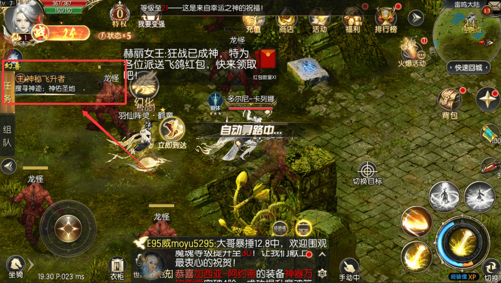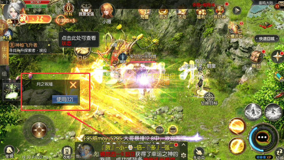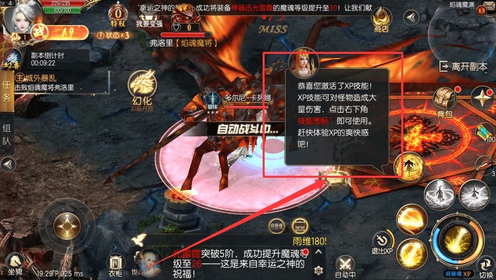 3、战斗时如果激活了炫酷的xp技能,记得点击右下角的技能图标来释放,它能对怪物造成大量伤害,是清怪的好帮手呀。