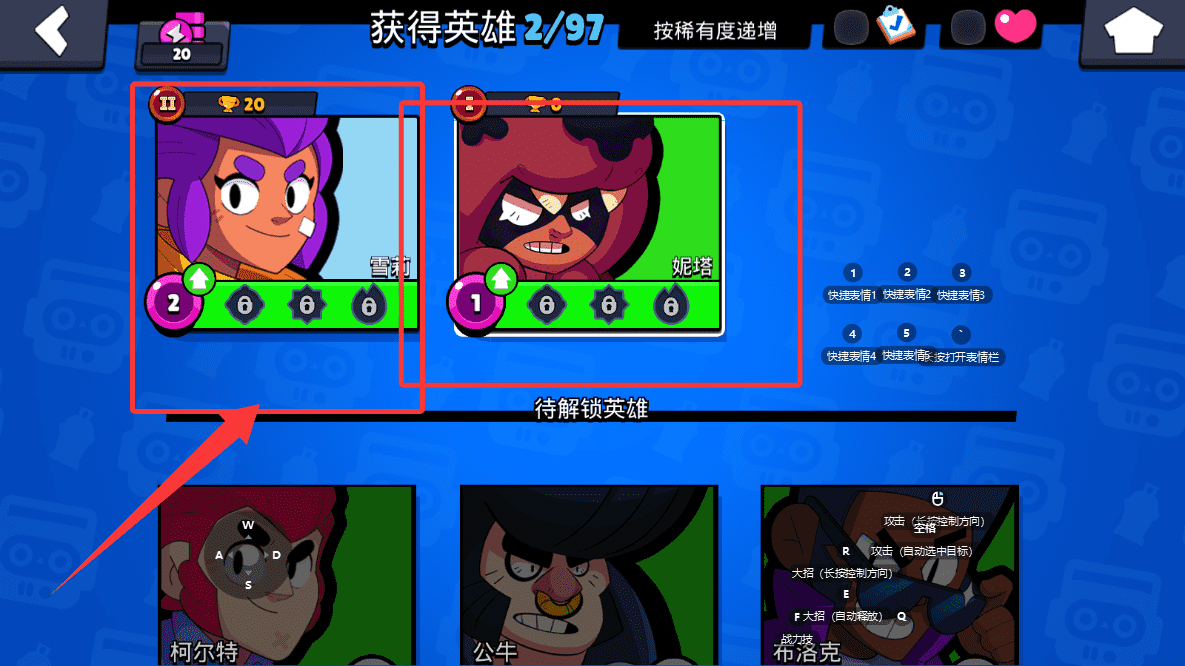 4、游戏中的英雄通过收集系统逐步获取,当前进度通常以“已获得数/总收集数”的形式展现,例如图示状态为已拥有2位角色,而完整收集目标共包含97位英雄。