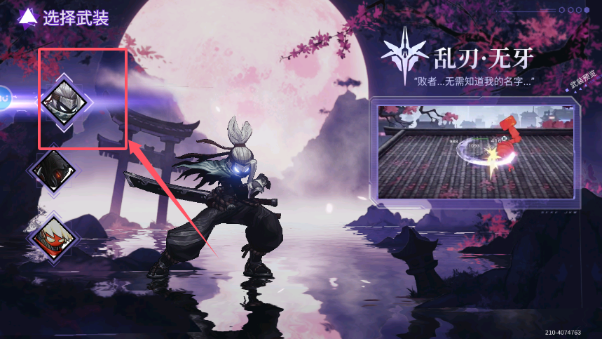 1、在武装配备界面中,系统会展示"乱刃·无牙"武装的详细信息面板。仔细阅读其属性说明后,若决定选用该武装,点击确认按钮即可完成装备。