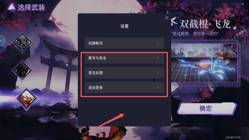 4、完成武装配置后,可通过系统菜单进入账号管理界面。这里包含切换账号、安全设置等实用功能,为后续可能的账户操作提供便捷通道。