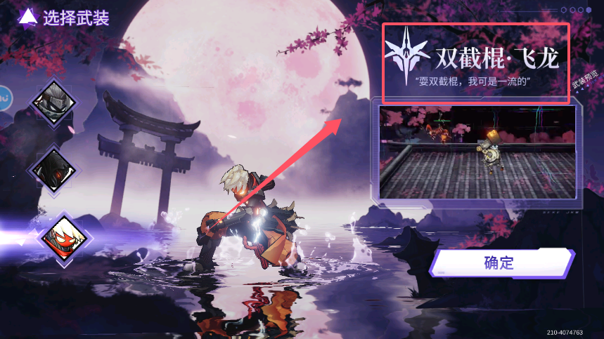 3、继续查看"双截棍·飞龙"武装的相关信息,了解其战斗特性与适用场景。确定选用后完成装备流程,成功配备三套不同特点的武装系统。