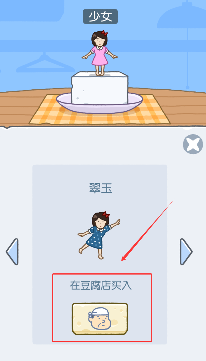 用收集的金币在豆腐店买入豆腐,获得新的女孩形象,达成成就解锁新的豆腐背景,体验收集的乐趣吧