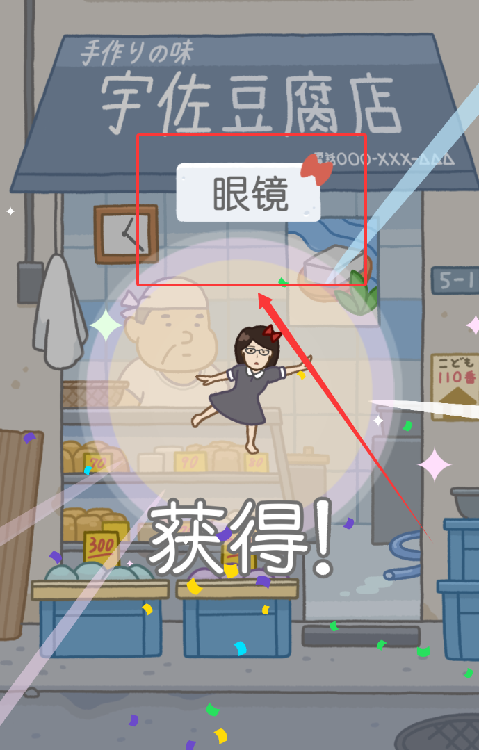 2、接着,关注豆腐店里的另一个物品“眼镜”,它可能放在特定位置。