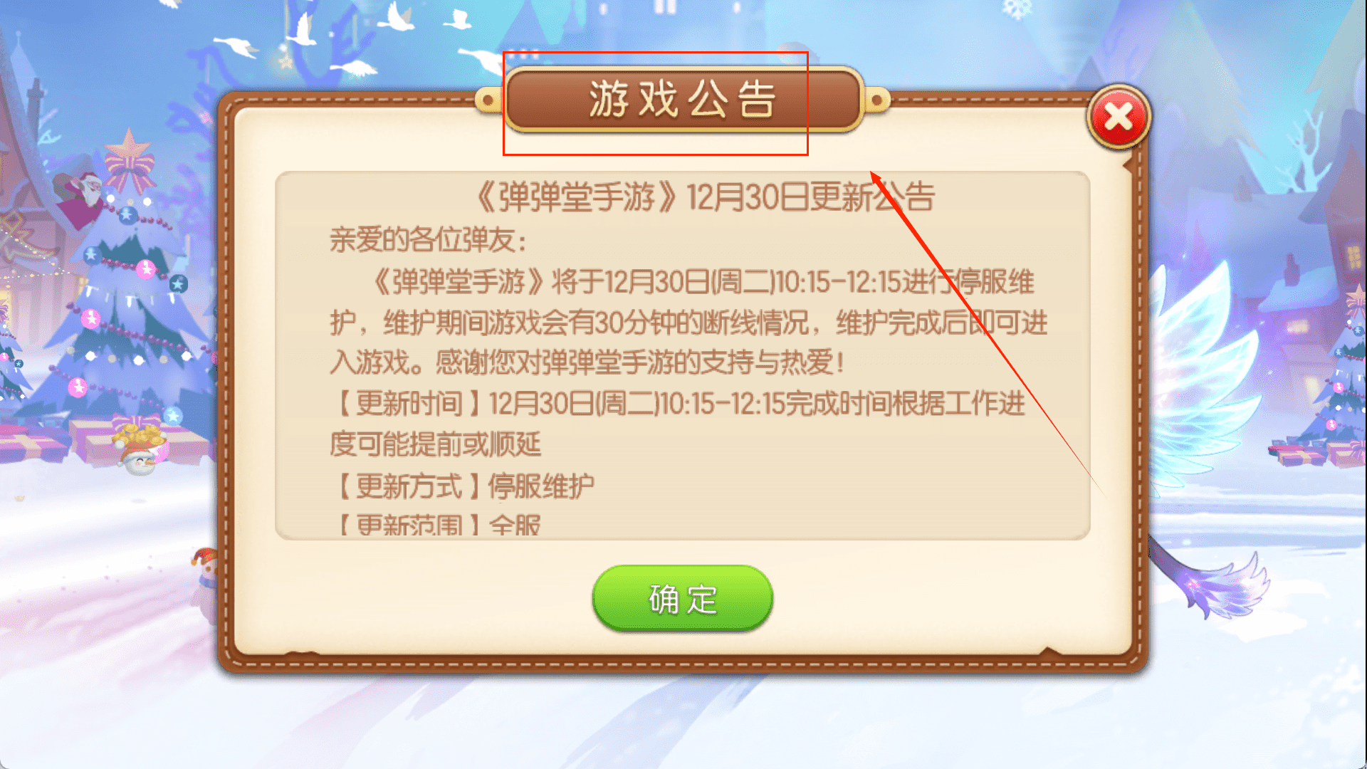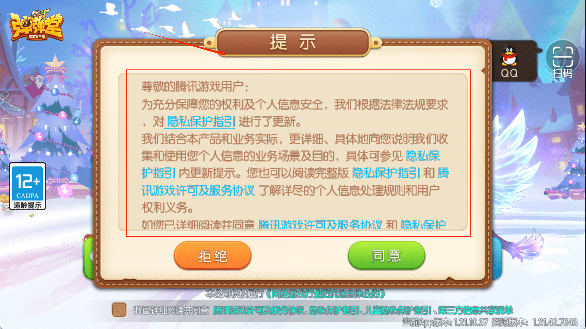 1、游戏一开始,会显示一个重要的提示窗口,主要内容是隐私政策的更新。窗口背景是节日气氛的图画。你需要进行的操作是,在仔细阅读后,于窗口底部点击表示同意的按钮。
