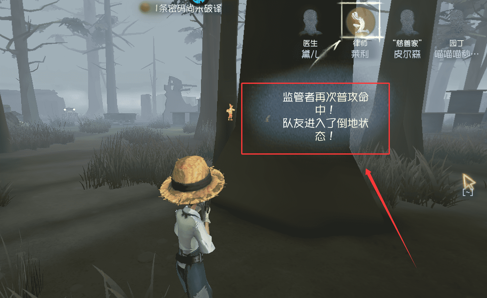 1、在第五人格中,当队友被监管者击倒后,会进入倒地状态,此时左上角会有队友状态提示。