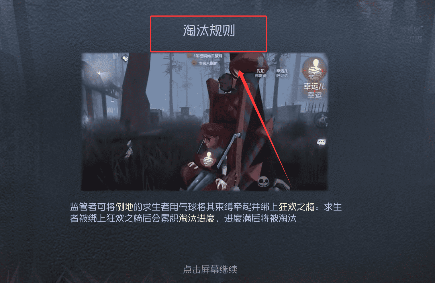 2、监管者可以用气球牵起倒地的求生者,并将其绑上狂欢之椅,椅子上会持续累积淘汰进度。