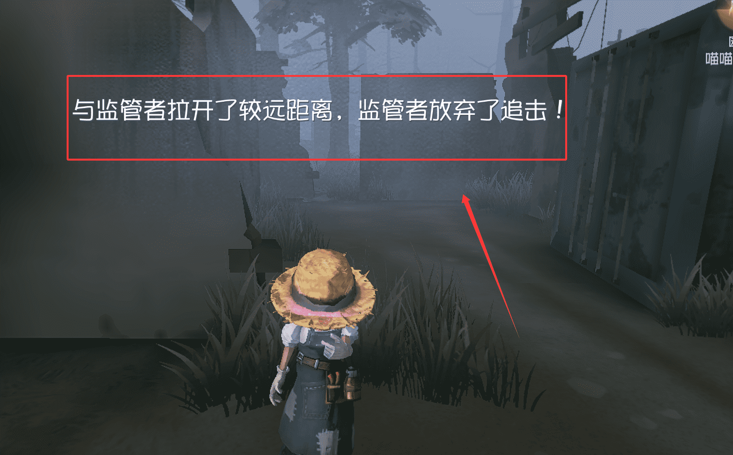 2、当你成功与监管者拉开较远距离后,监管者通常会放弃追击,此时不要慌张。