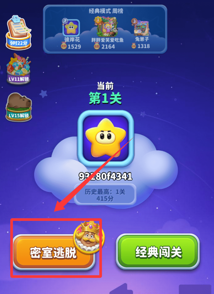 3、在经典模式里,可以查看“周榜”和其他玩家的分数,激励自己闯关。