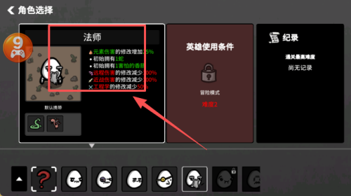2、在角色选择界面,点击底部英雄列表,选中法师等角色,查看其专属增益效果。
