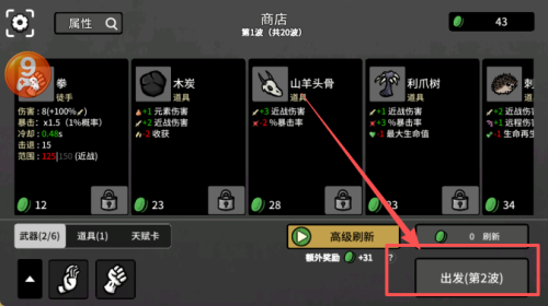 1.收集材料以快速获得经验,并在一波接一波的敌人到来期间购买商店策略中的道具