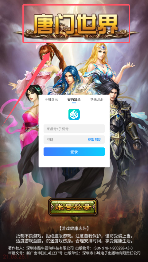 4、所有信息确认无误后,点击最终的登录按钮即可踏入游戏世界。界面底部印有健康游戏忠告,倡导合理安排时间,享受健康生活,完成登录后便能开启奇幻冒险旅程。